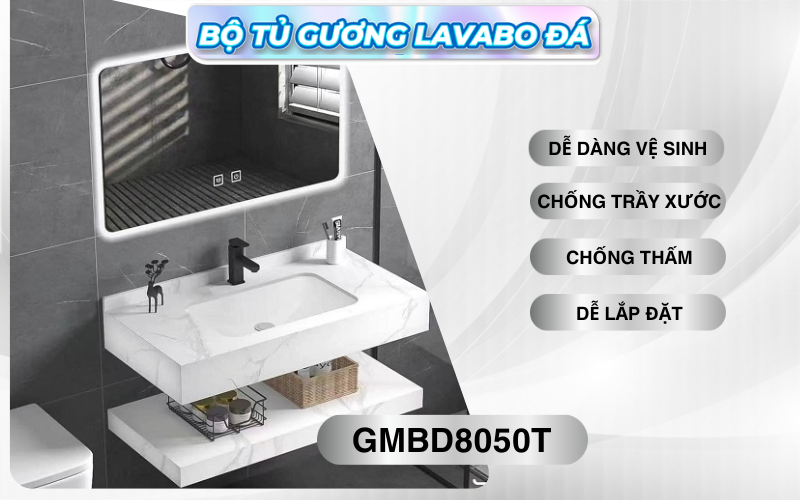 BỘ TỦ GƯƠNG LAVABO ĐÁ GAMA CAO CẤP GMBD8050T