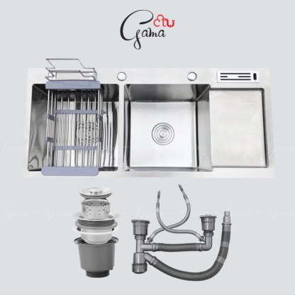 - Bồn rửa chén đúc Inox 201 Gama GMCR008 có thiết kế đúc nguyên khối vô cùng tinh xảo, các góc cạnh đều toát lên sự hoàn mỹ, đem lại sự sang trọng cho không gian nhà bếp.