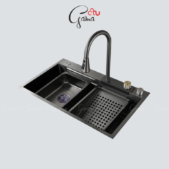 Thông tin sản phẩm bồn rửa chén đúc Inox 201 Nano màu đen Gama GMCR7546NNV