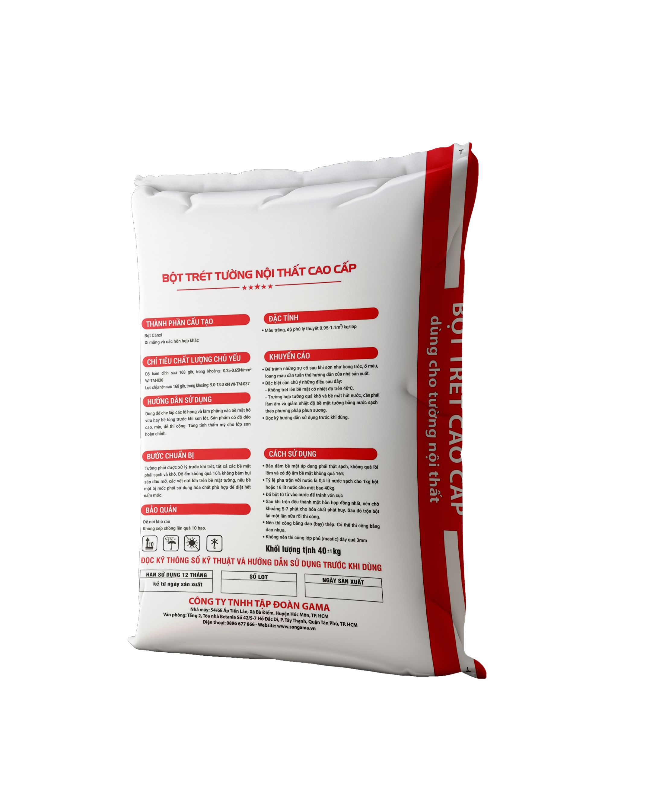 • Độ phủ: 0.95 – 1.1m²/Kg/Lớp