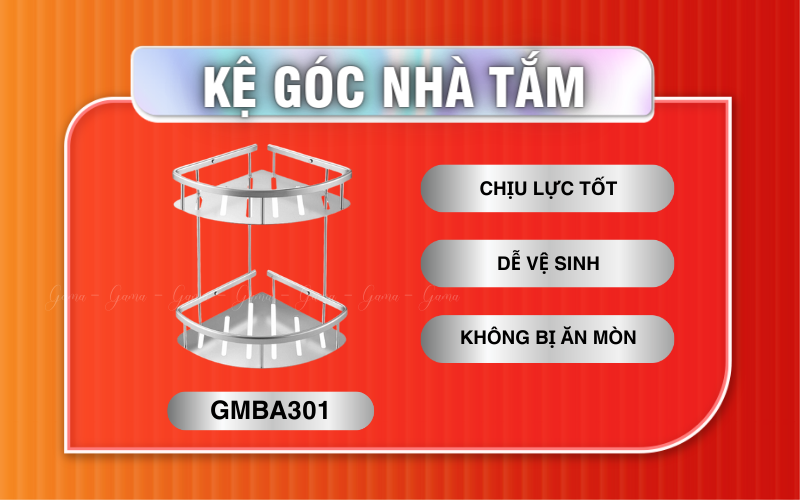 >Tham khảo thêm kệ góc nhà tắm 2 tầng GAMA GMBA302